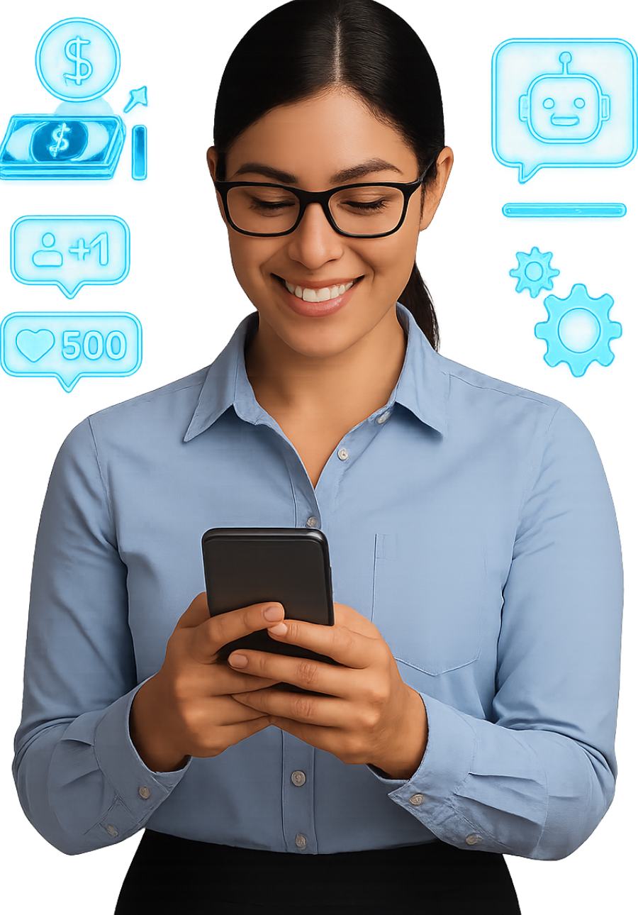 Desde la gestión de redes sociales y campañas publicitarias, hasta el diseño web y asistentes virtuales con inteligencia artificial, te ofrecemos soluciones personalizadas para que vendas más y trabajes menos.